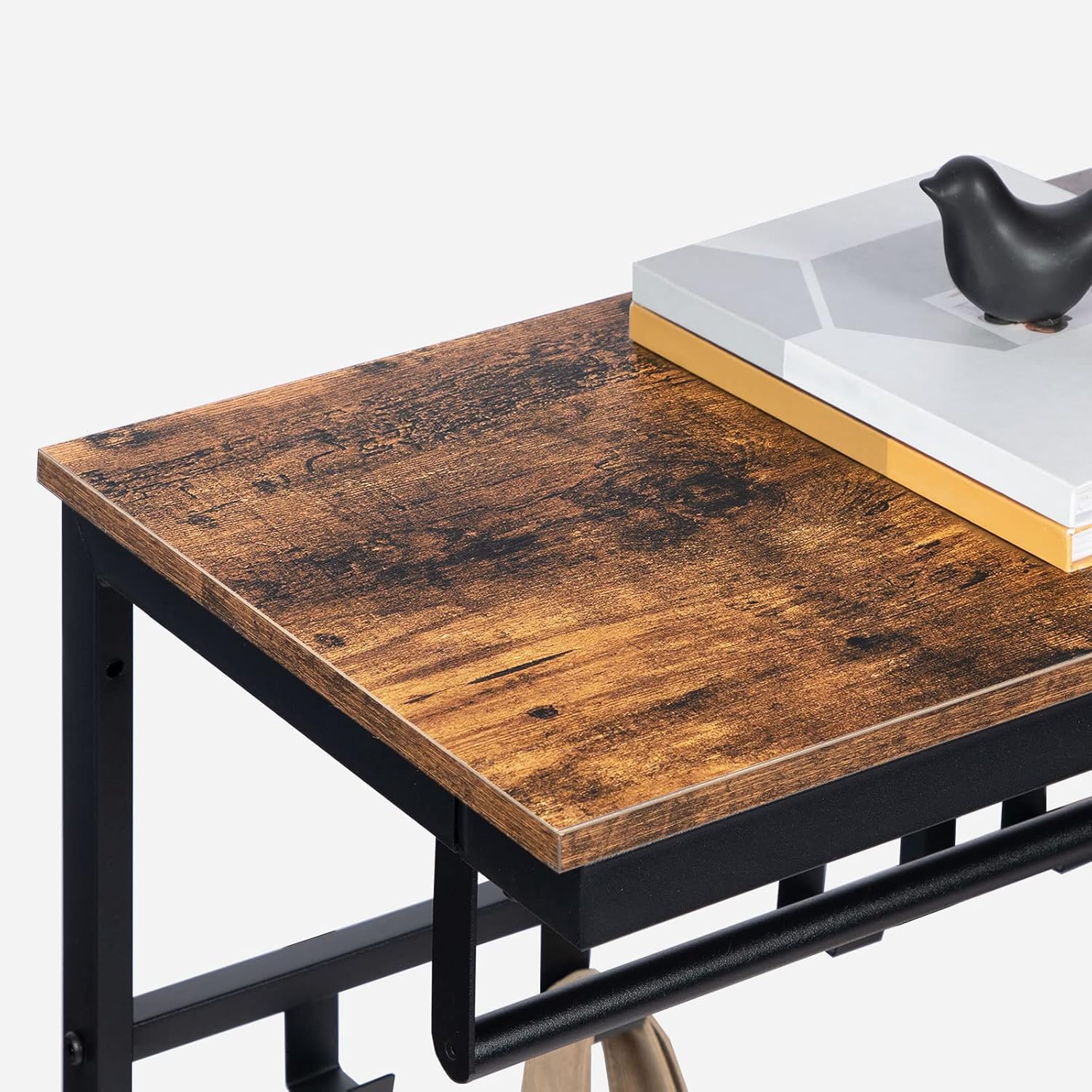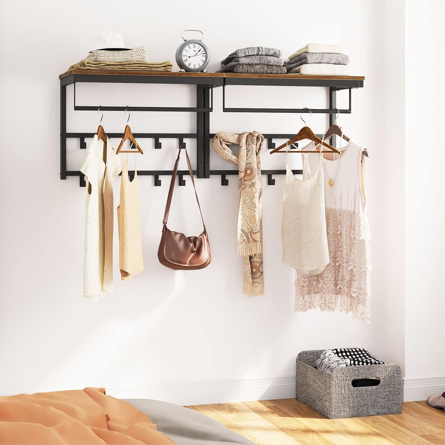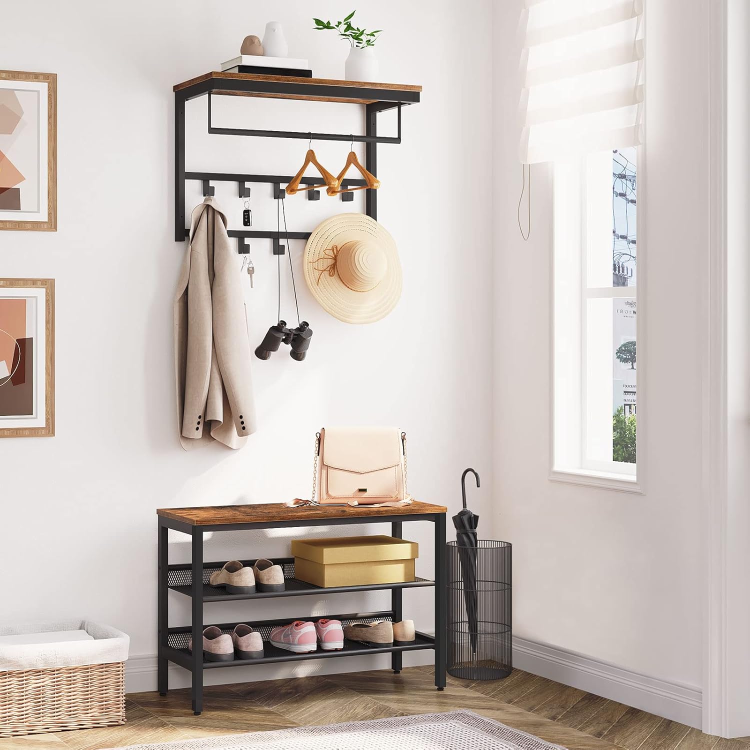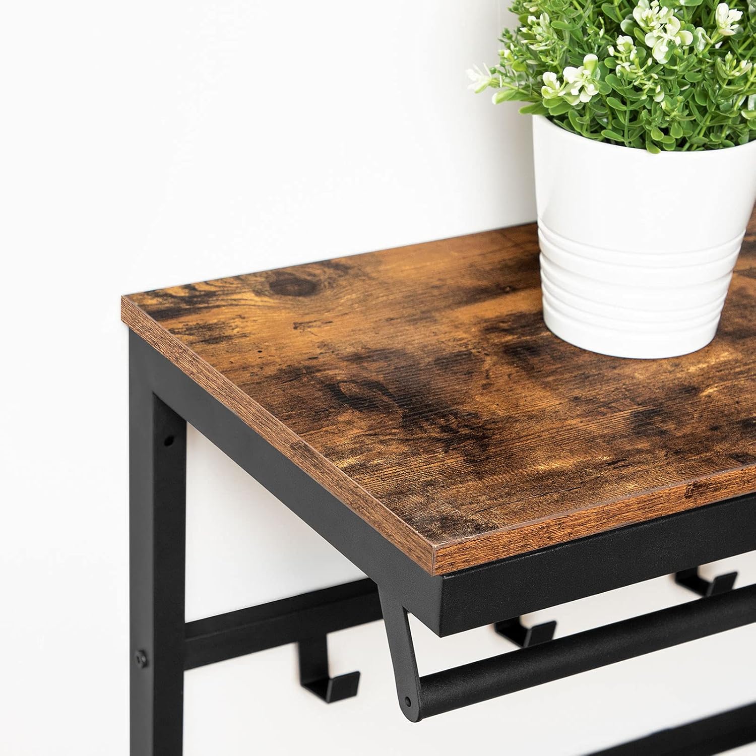 Enkel og stilfuld: Det sorte retrodesign på det vægmonterede garderobeskab kan bruges i entreen, stuen, soveværelset og badeværelset. Stativet kan bruges til at vise dine yndlingsplanter, og tøjkrogene kan bruges til at hænge tøj eller håndklæder på badeværelset.